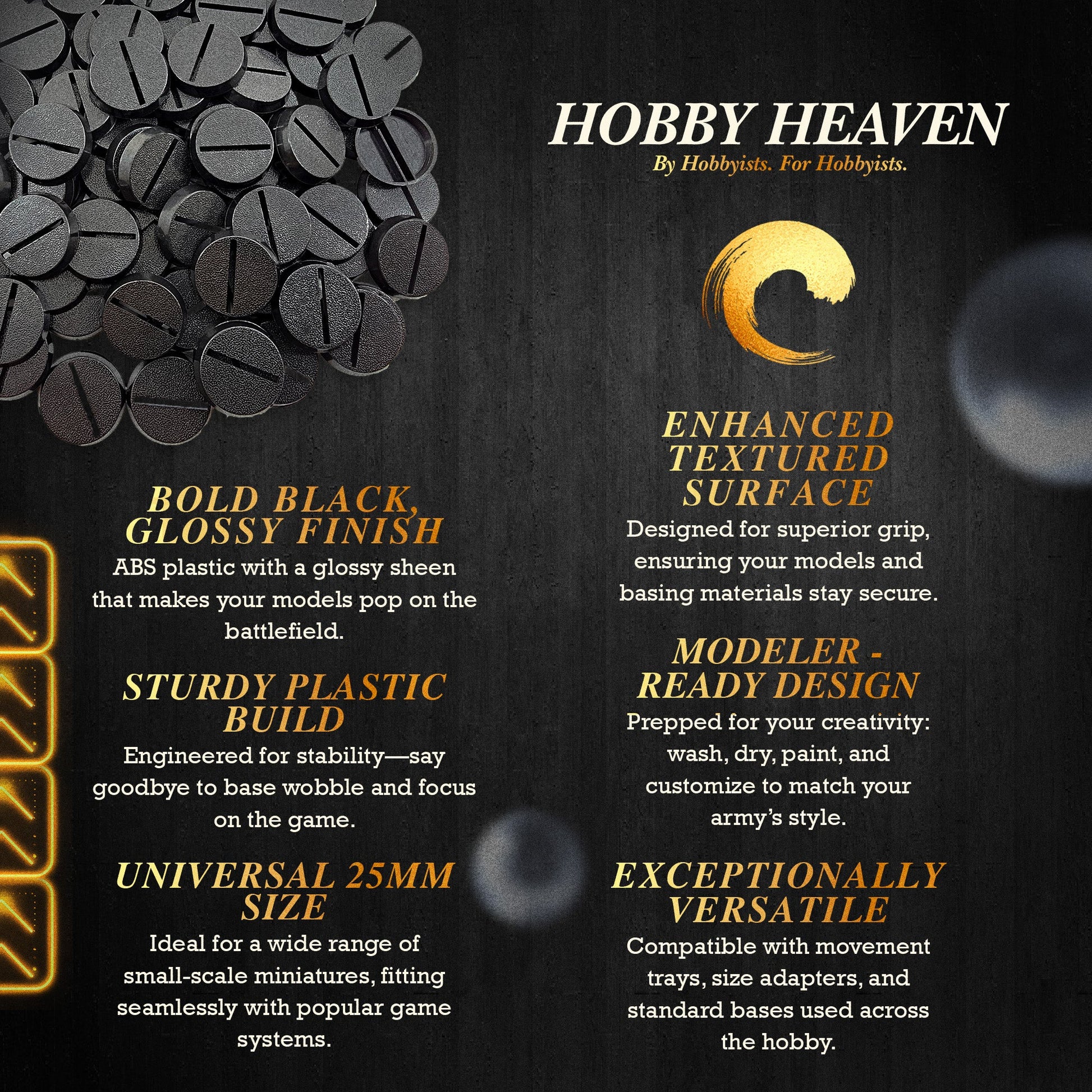 Each base is crafted to exact specifications, ensuring a perfect fit for your 25mm scale miniatures.