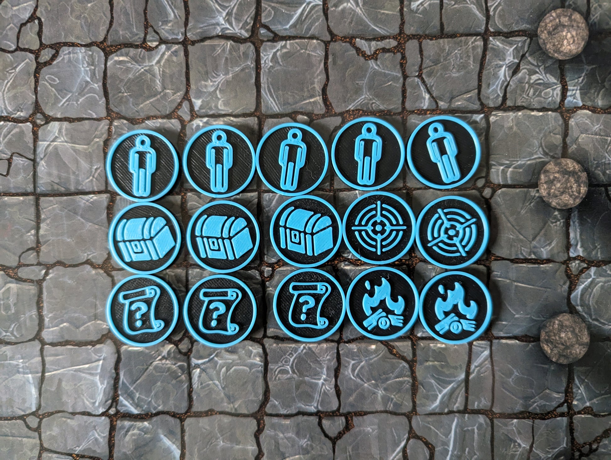 Like our wooden tokens, these 3D-printed tokens are an affordable and portable alternative to miniatures and are perfect for the travelling DM!