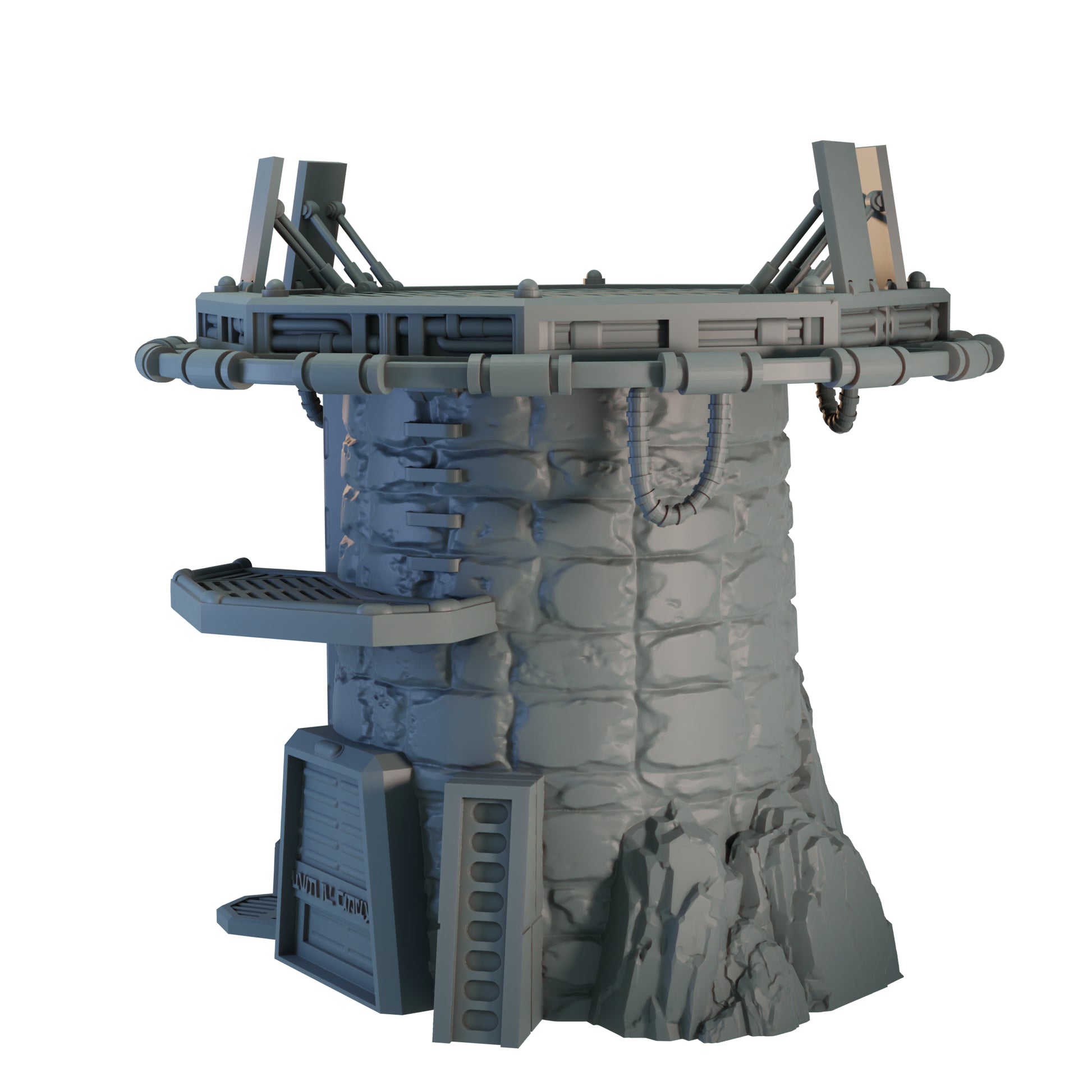 The Starport Landing Pad is one of the most versatile kits in the range, designed to adapt to any battlefield. Featuring removable blast shields, hanging cables, and a ground-level ramp, it can be used as a freestanding pad, with or without its tower base.