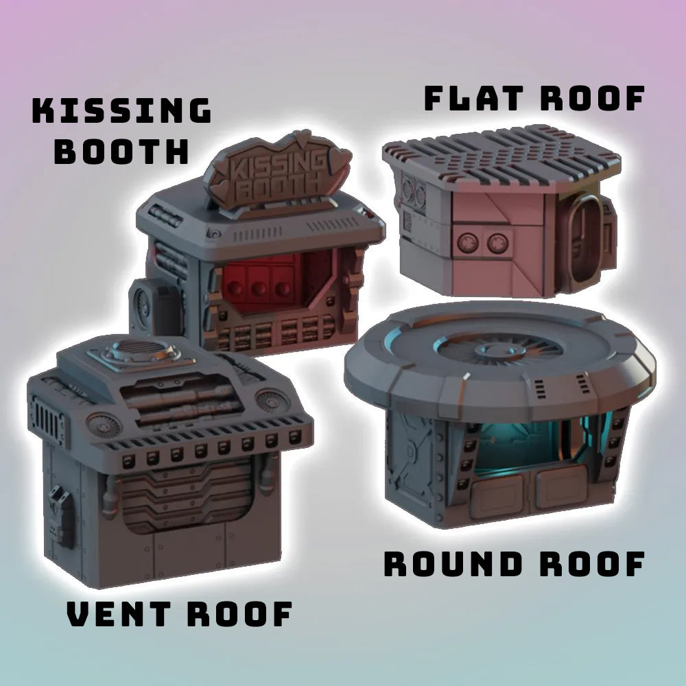 The Fighting Pits of Flatline City Feature removable viewing platforms and huge gates. They are compatible with other Hex shaped buildings from the core set or gantries and can be enhanced with accessory rings or alternative rooftops. It is compatible with other ‘Hex’ sized building from the Flatline City terrain series.