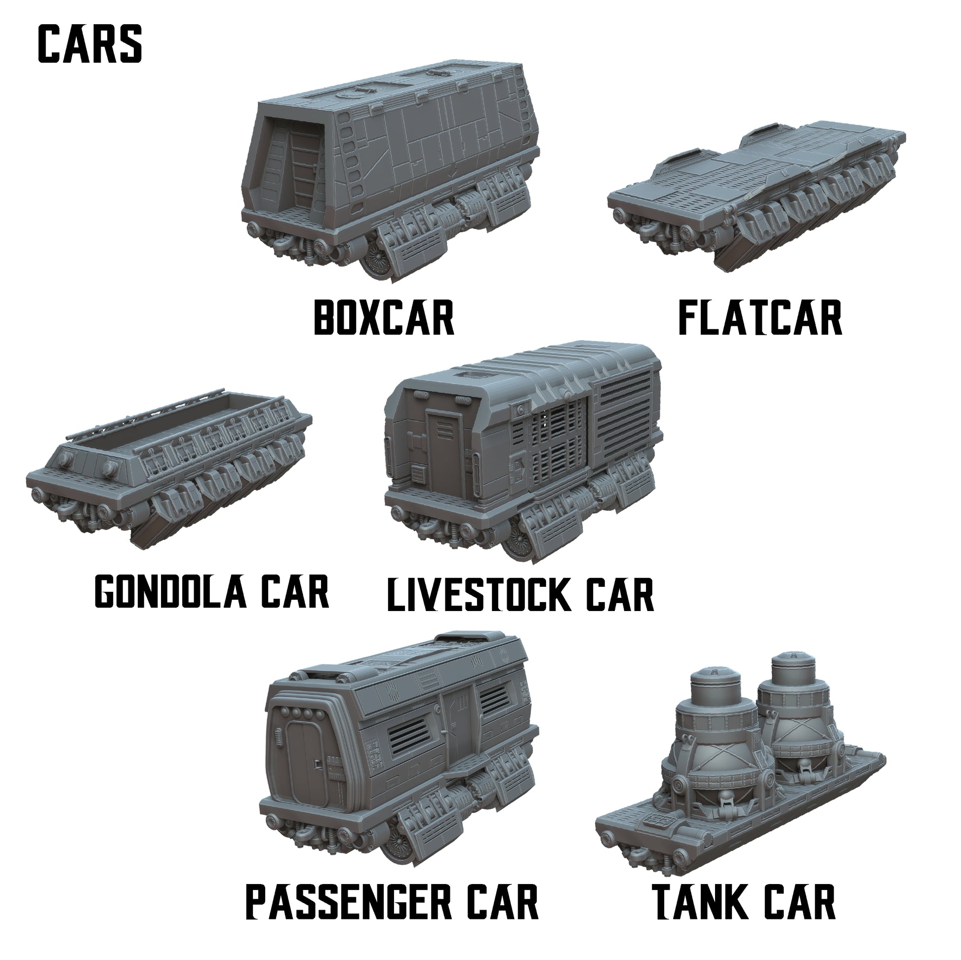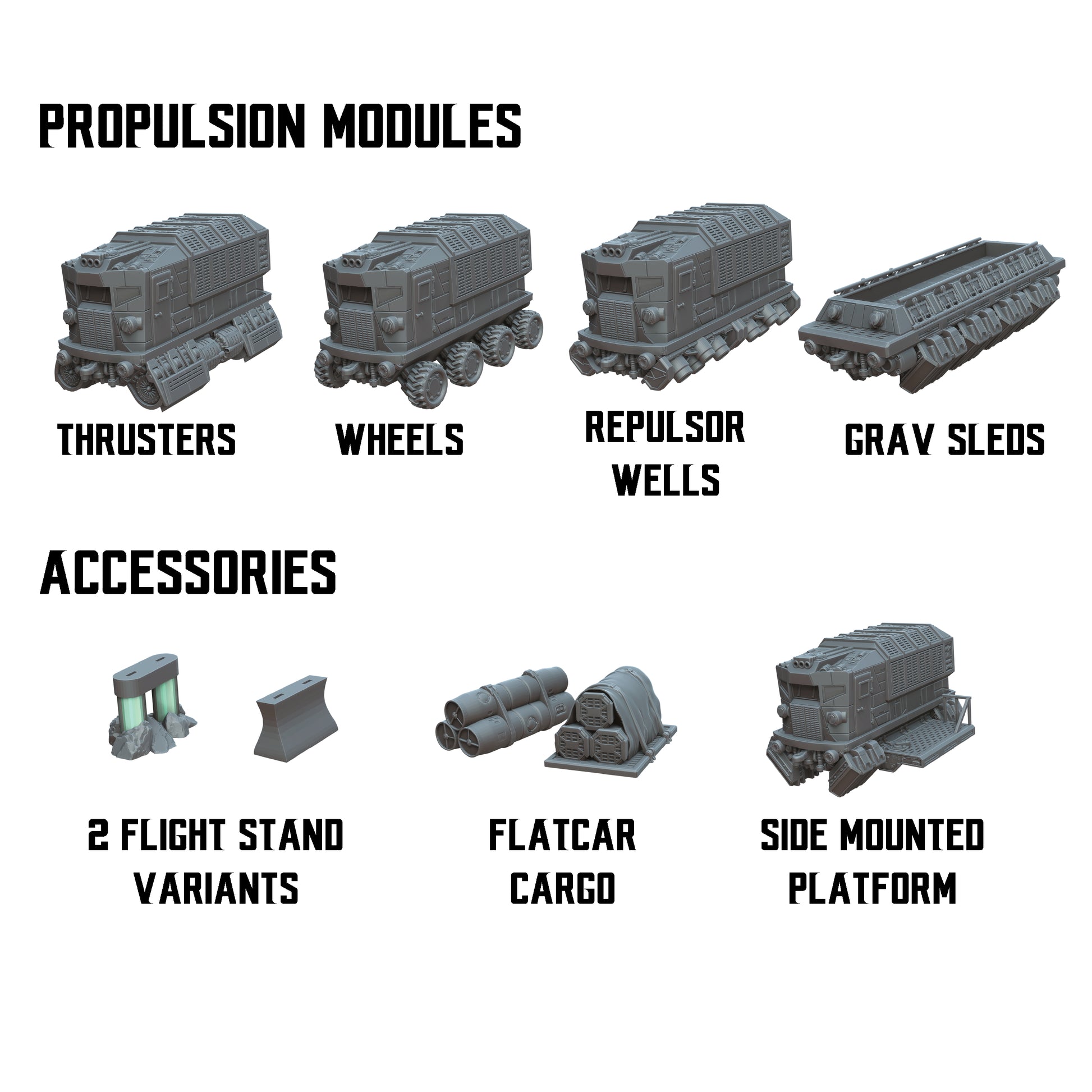 Repulsor Land Train is a set of modular sci-fi train models for 28-32mm miniature gaming but still suitable up to 35mm.