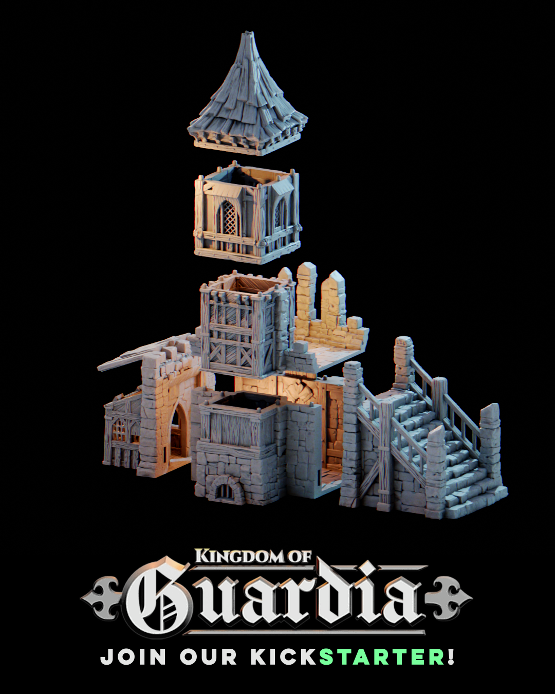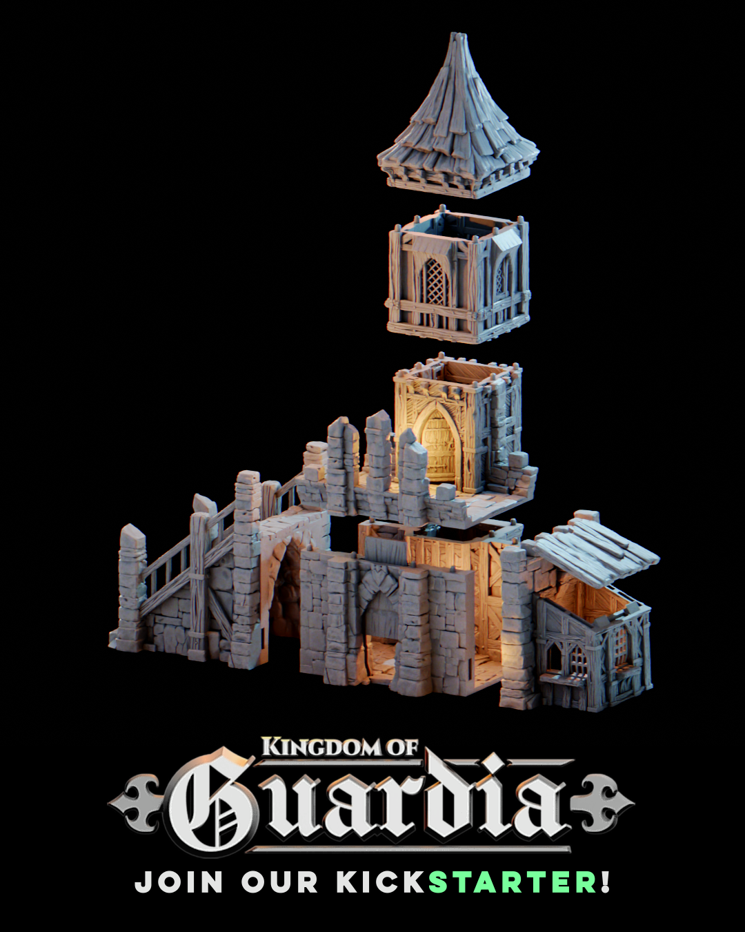 Whether you need a jail for locking up criminals, a town shop for your merchants to peddle their wares, or a lookout post beyond the walls of Guardia to keep watch over the kingdom, this building will add a touch of authenticity and variety to your tabletop game.