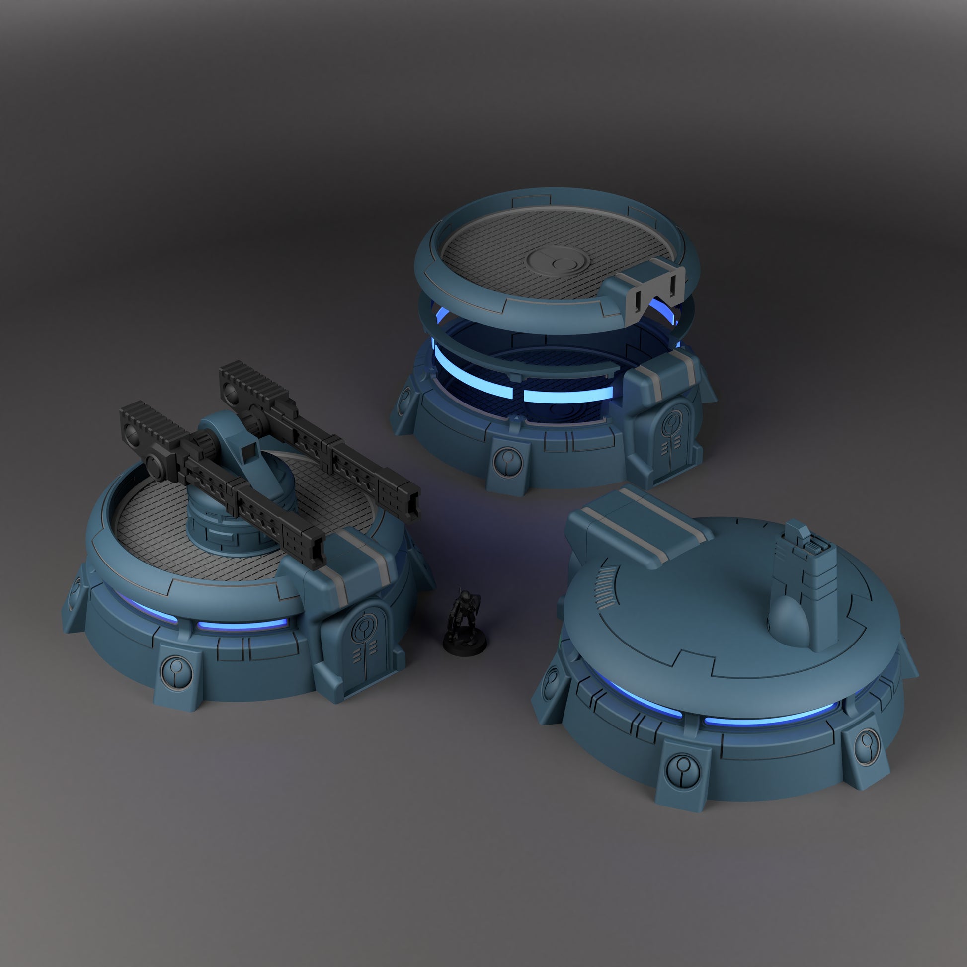 The Flat Bunker has a rooftop surface to stand infantry. The Domed Bunker features a removable antenna. The Gun Bunker has a twin barrel turret that rotates and tilts for customised positioning.