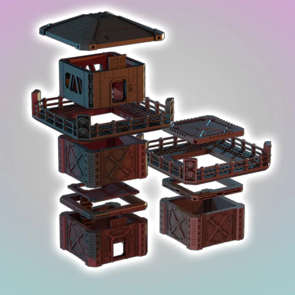 This watchtower is modular, has playable interiors and includes removable floors, rooftops , flooring, walkways and more! It can be used a a custom height guard tower, individual buildings or as smaller platforms.